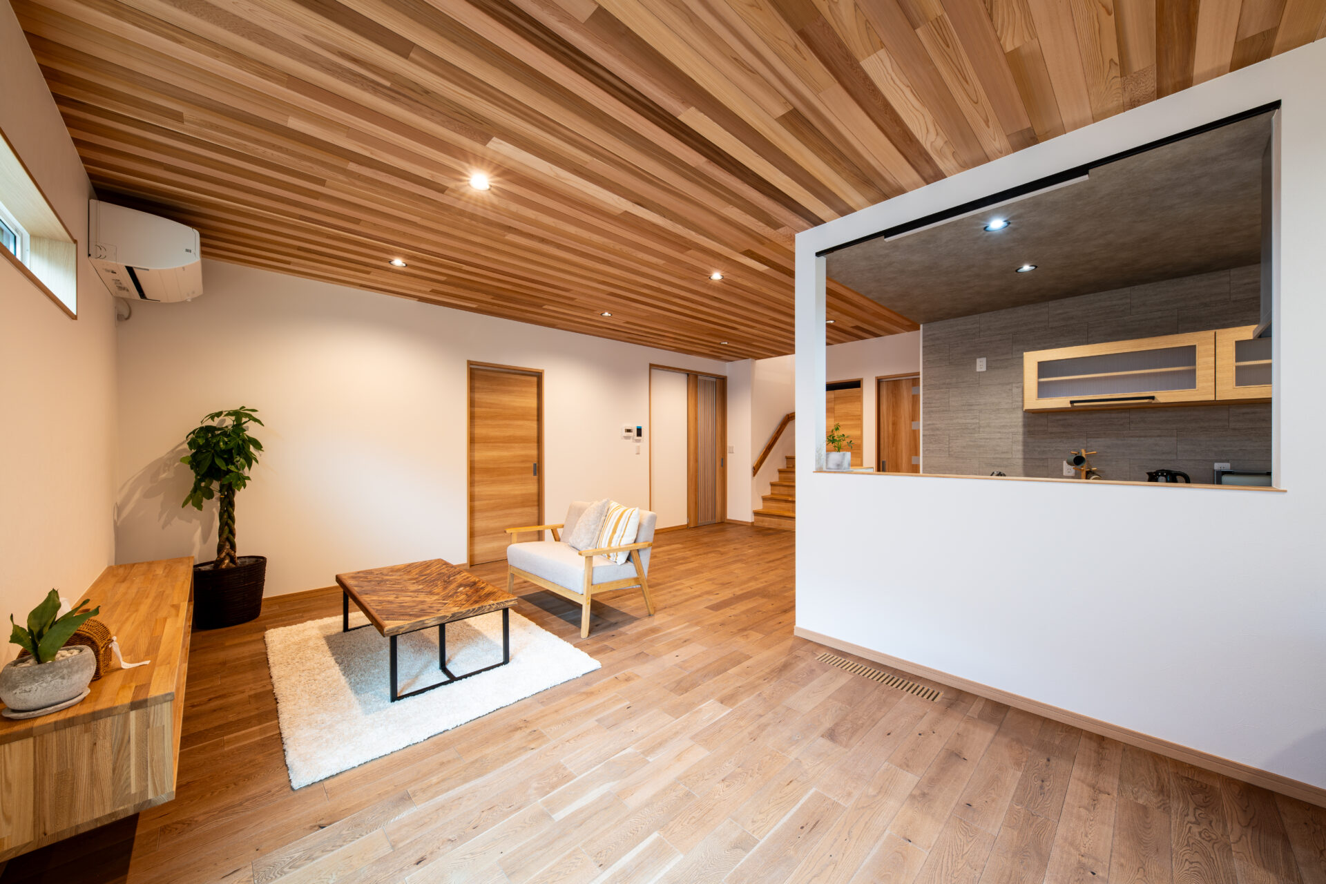 床下エアコンによる全館空調を採用し、家全体をやさしい暖かさで包み込みます。