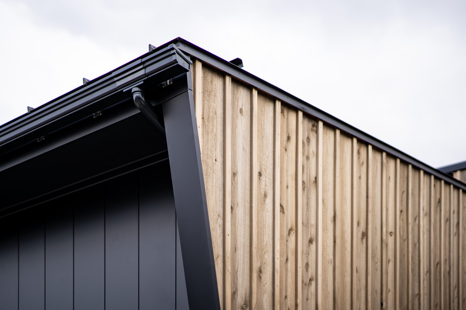 ガルバリウム鋼板のシャープな表情と、越後杉のやわらかな木の質感。